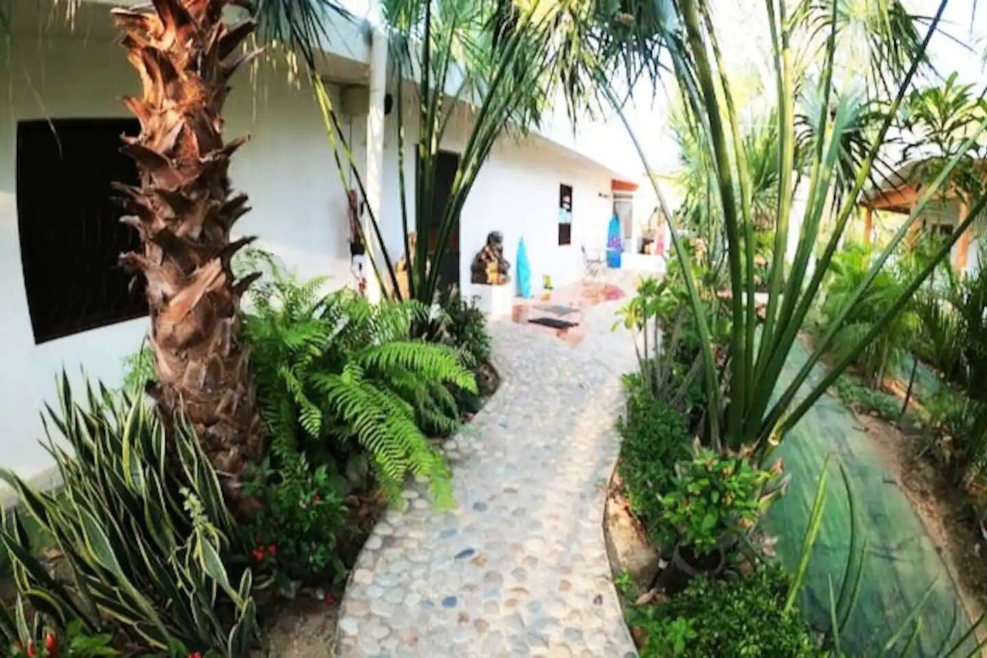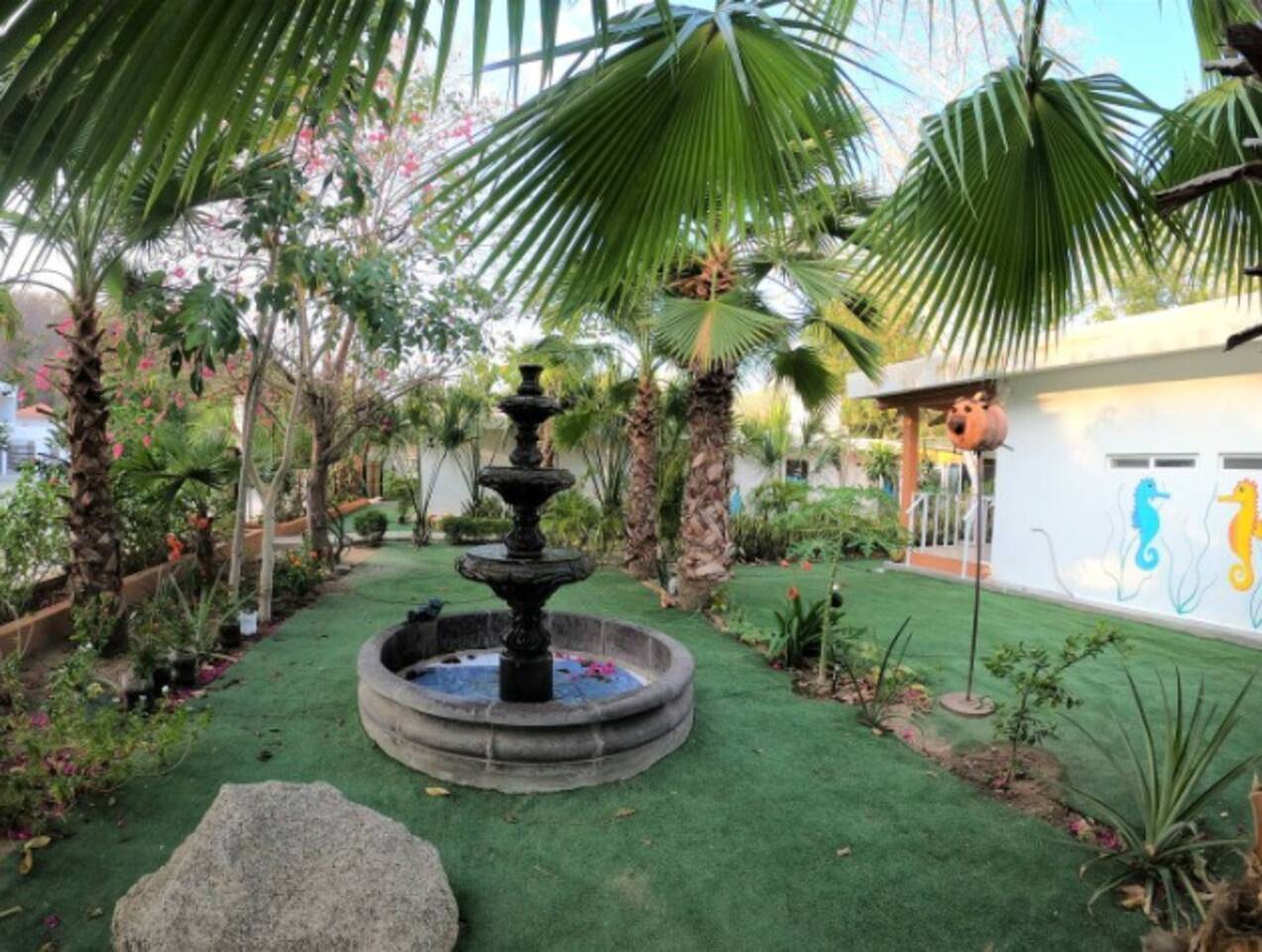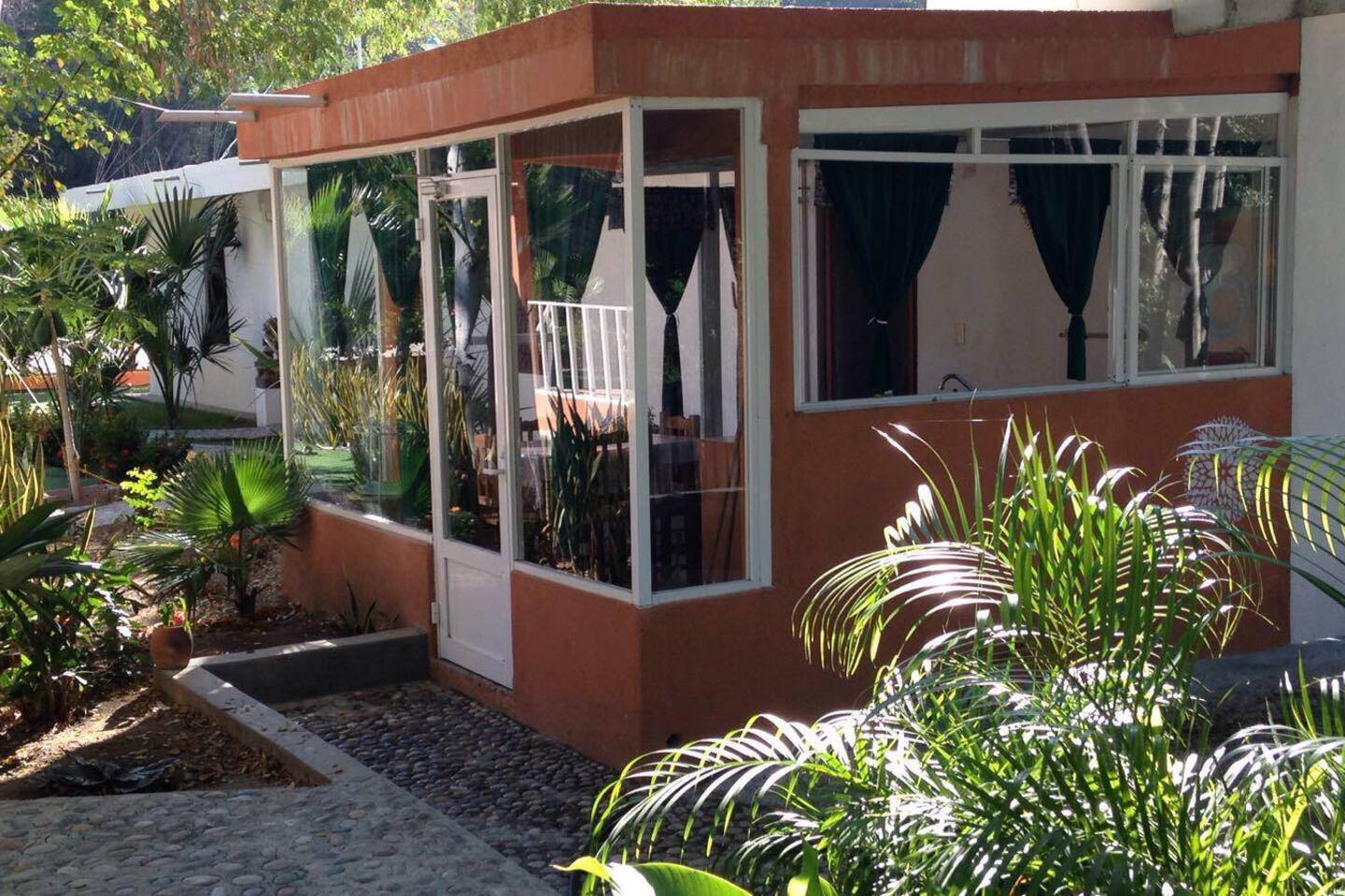 Construida en 2018, la propiedad fue diseñada con materiales que favorecen el aislamiento térmico y acústico, asegurando confort durante todo el año. Se asienta sobre un terreno con más de 600 m² de jardines, donde conviven flores, árboles frutales y senderos artesanales elaborados con piedra pulida por el mar de Copalita.
