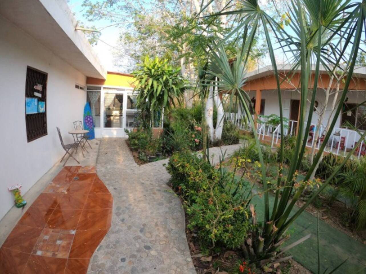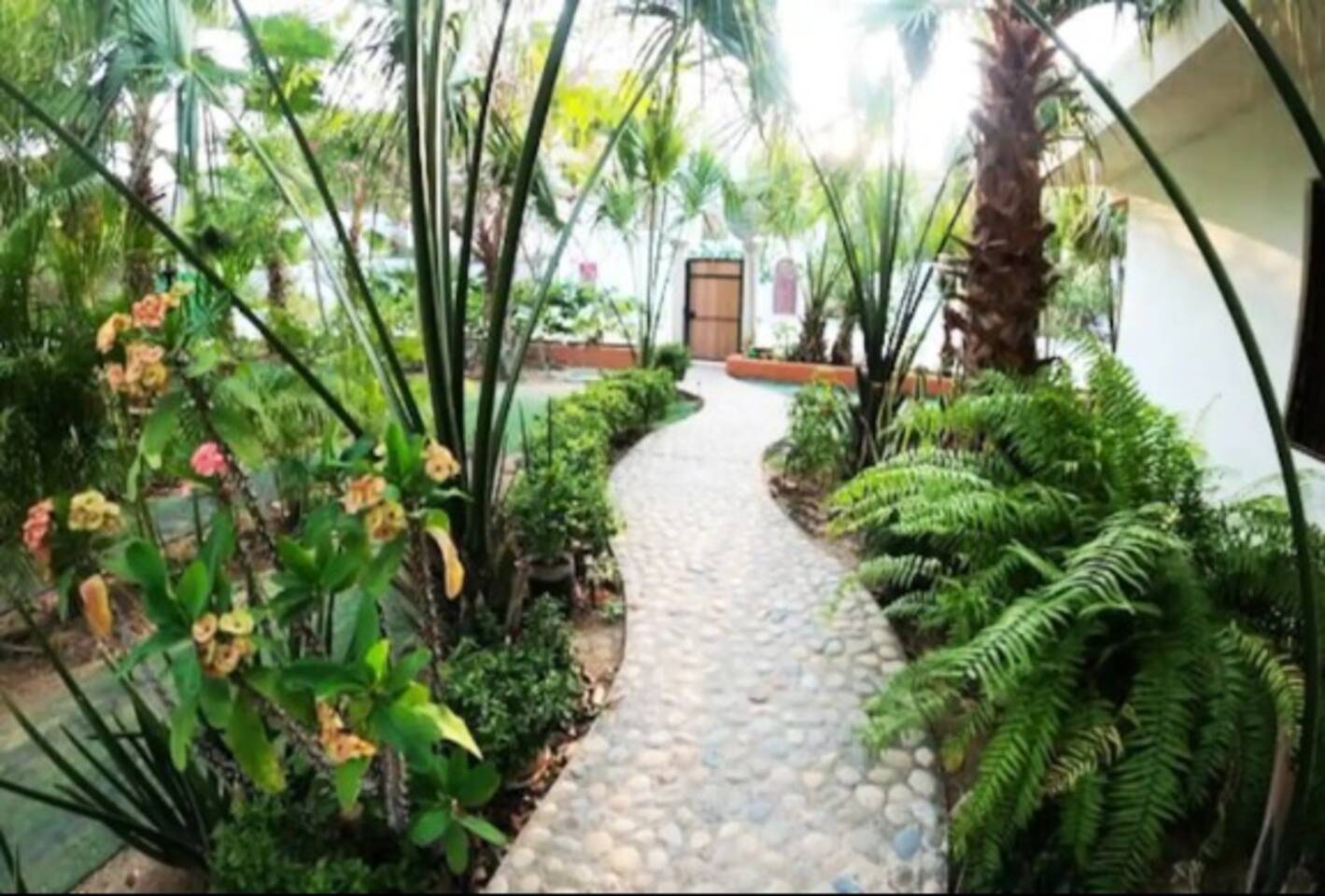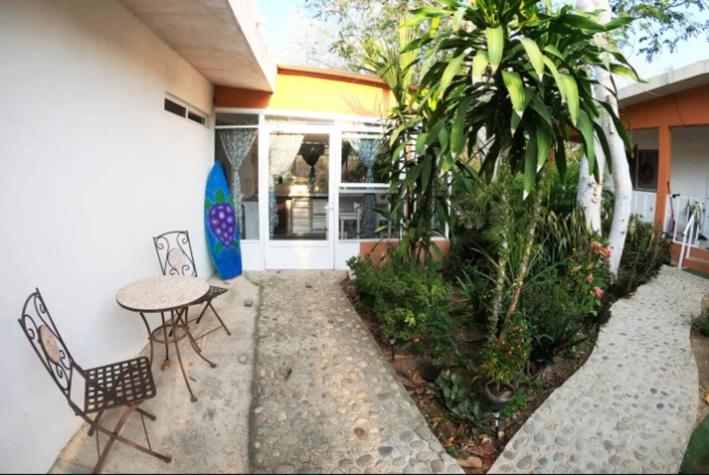 Construida en 2018, la propiedad fue diseñada con materiales que favorecen el aislamiento térmico y acústico, asegurando confort durante todo el año. Se asienta sobre un terreno con más de 600 m² de jardines, donde conviven flores, árboles frutales y senderos artesanales elaborados con piedra pulida por el mar de Copalita.