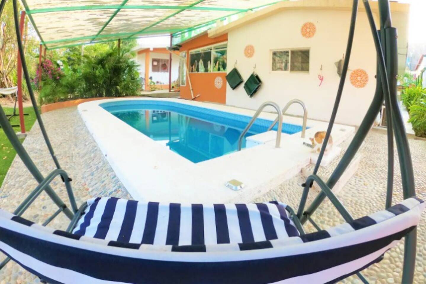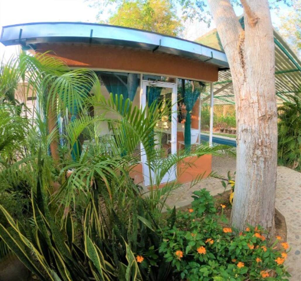 La propiedad forma parte de un terreno con dos construcciones independientes, compartiendo áreas verdes y alberca, manteniendo una sensación de privacidad dentro de un entorno natural. La presencia de fauna doméstica integrada al espacio refuerza la experiencia de vida en contacto con la naturaleza.