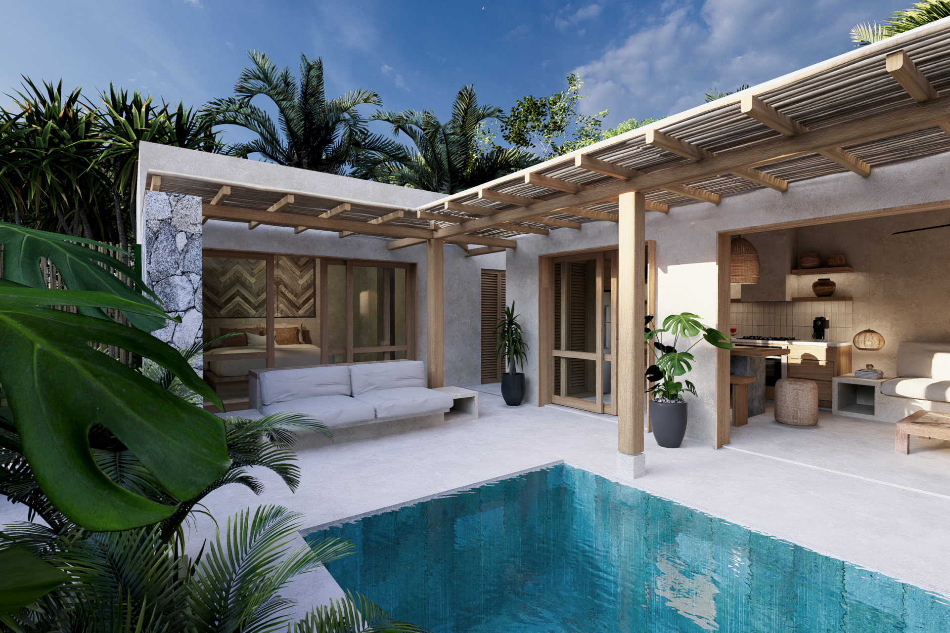 Las residencias priorizan la fluidez entre interior y exterior, integrando vegetación, luz natural y espacios diseñados para un estilo de vida relajado y auténtico.